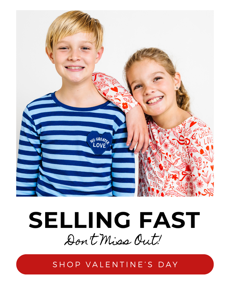 Our purpose at Holy Pals is to make the Bible a part of every child's life at home. Have fun with story time before bed and use the pictures on the pajamas to tell the story or even have your child do it! Each pajama has a fun Biblical print and has the passage reference stitched on the sleeve. Look up the passage with your child and memorize where the story is in the Bible. Both you and your child will grow to know the Bible more and more with every wear.