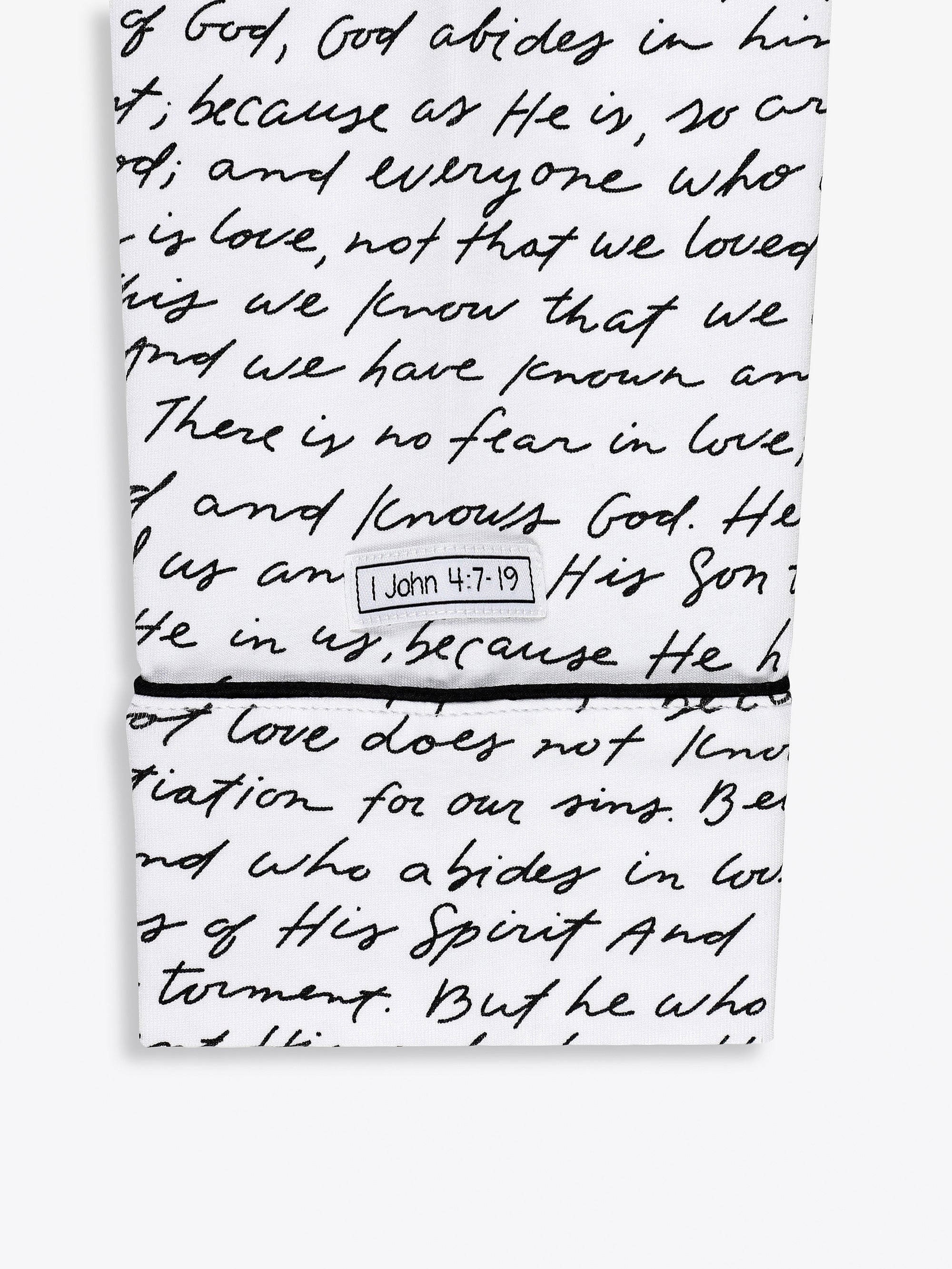 Introducing our stunning 2026 signature print, "Love One Another," based on the fundamental Christian passage 1 John 4:7–19, which deeply focuses on God and His love. This special design was created to literally "wrap your family in the Word of God," featuring the full Scripture text, which was custom-written by an artist exclusively for Holy Pals. Crafted from our beloved, cozy, and breathable 100% Premium Cotton, these Christian family pajamas offer the ultimate in comfort and softness for bedtime. It is heartwarming to be wrapped literally in this beautiful, intentional design, which took months to perfect. This Scripture sleepwear serves as a constant, comforting reminder that “God is love” and we are called to “love one another.”