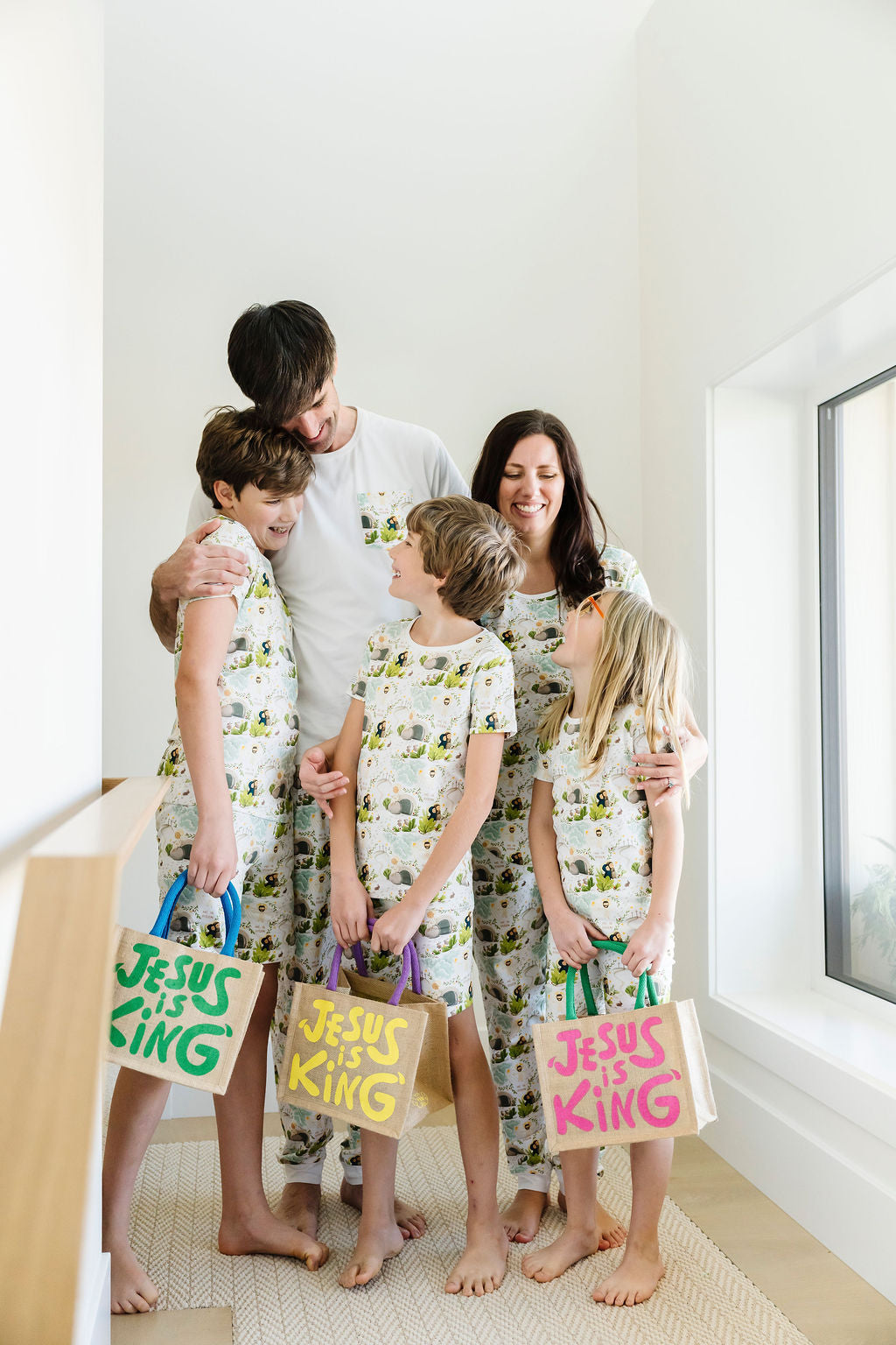 Each piece serves as a beautiful teaching tool, designed to help parents share the promise of Salvation! Whether you are looking for matching family Easter pajamas for a cozy morning, a meaningful addition to a Christian Easter basket, or a special gift for loved ones, this collection is a joyful way to wrap your family in the Word of God.