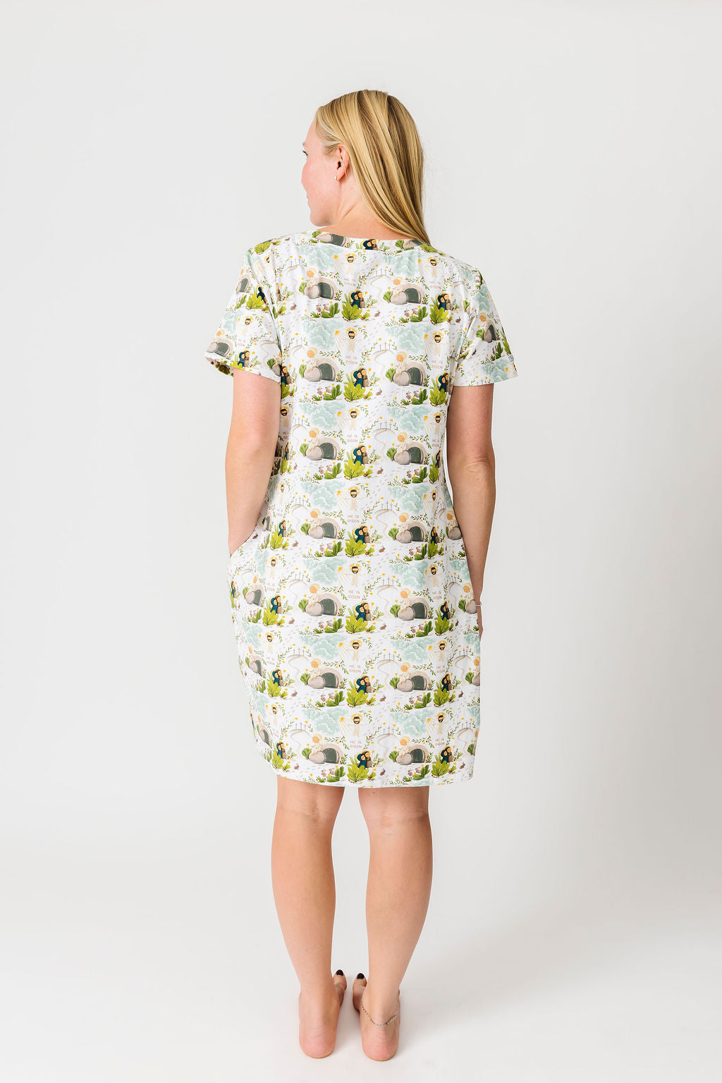 This Women's Nightgown is made from our signature 100% Premium Cotton for ultimate comfort and durability. It features our exclusive "He Is Risen" print that was inspired by the joyful news in Matthew 28:1-8. It is FULL of incredible details about the Crucifixion and Resurrection of Jesus. It is machine washable and features a tag-free interior to prevent irritation.