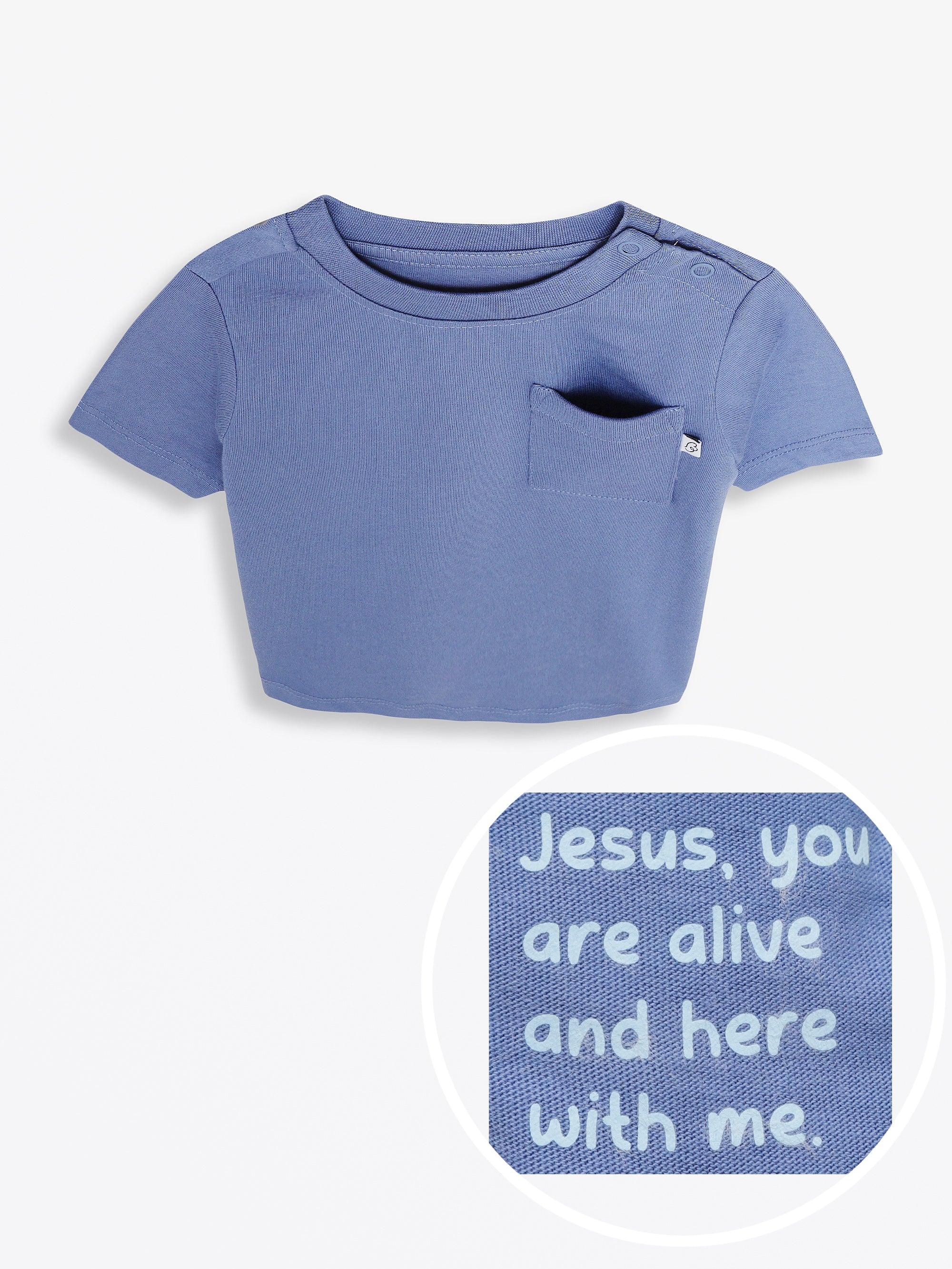 These aren’t just any tees—they’re a new way to help kids carry their faith with them, literally. Each Prayer Pocket T-Shirt features a small pocket over the heart, stitched with care and filled with a powerful tool: a simple prayer kids can say when they are in need of strength. Inside, they’ll find: “Jesus, you are alive and here with me." It’s a quiet invitation to connect with God during the school day, at the playground, or whenever life feels a little too big. Whether they say it aloud or whisper it in their hearts, they’re learning how to turn to Him throughout the day.