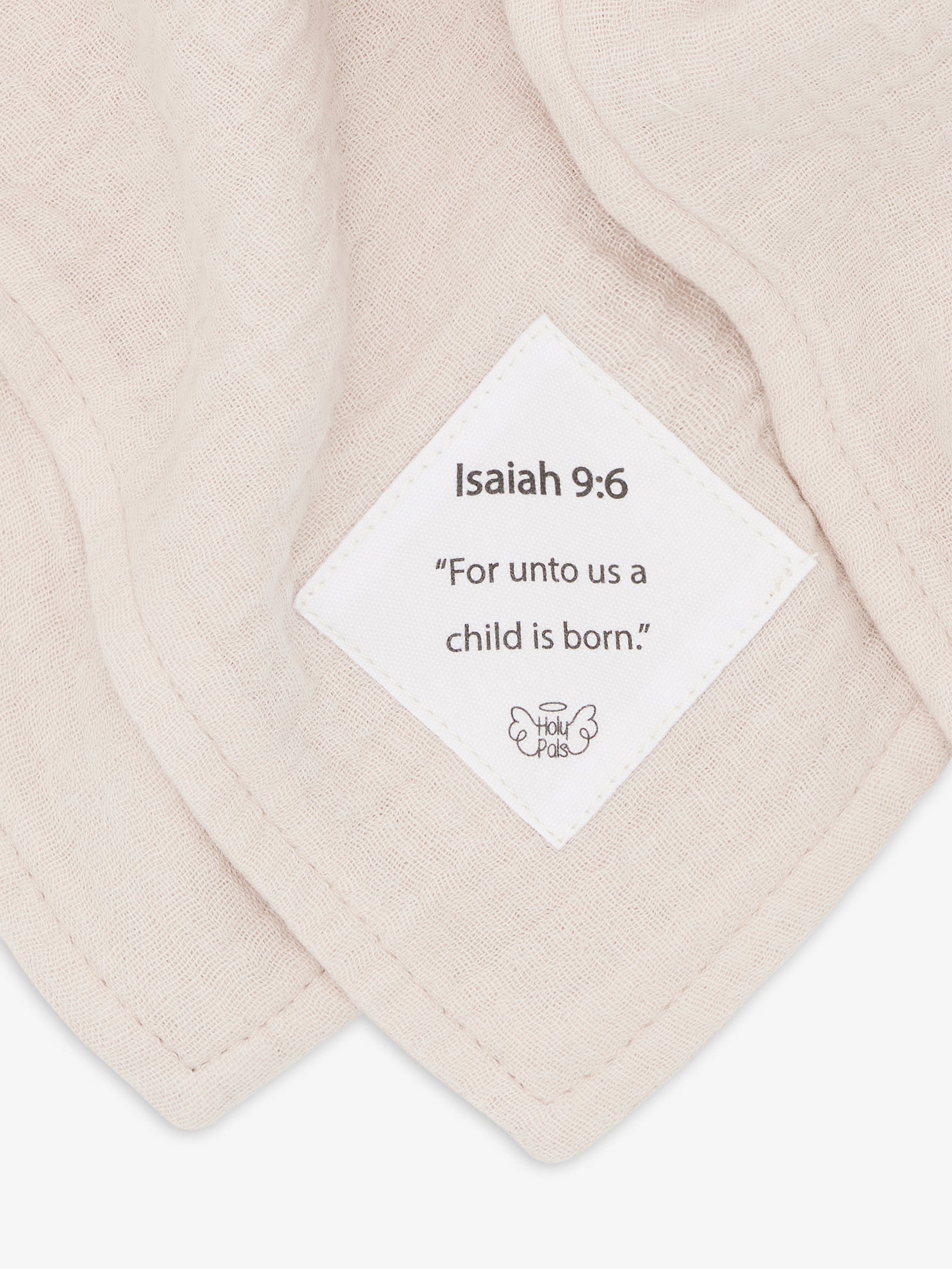 Made with 100% organic muslin cotton, this lovey is perfect for snuggles, naps, and tiny hands reaching to keep Jesus close.