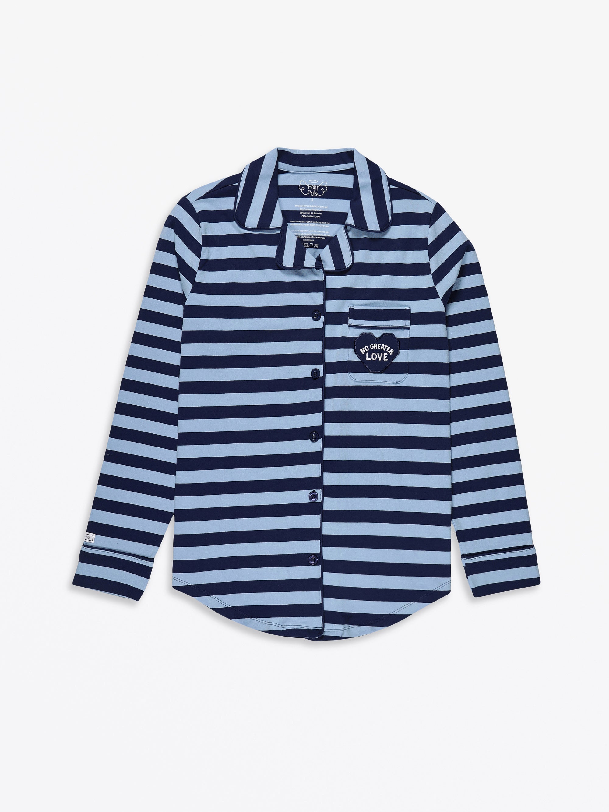 No Greater Love Blue Womens PJ Notch Collar Set Cotton