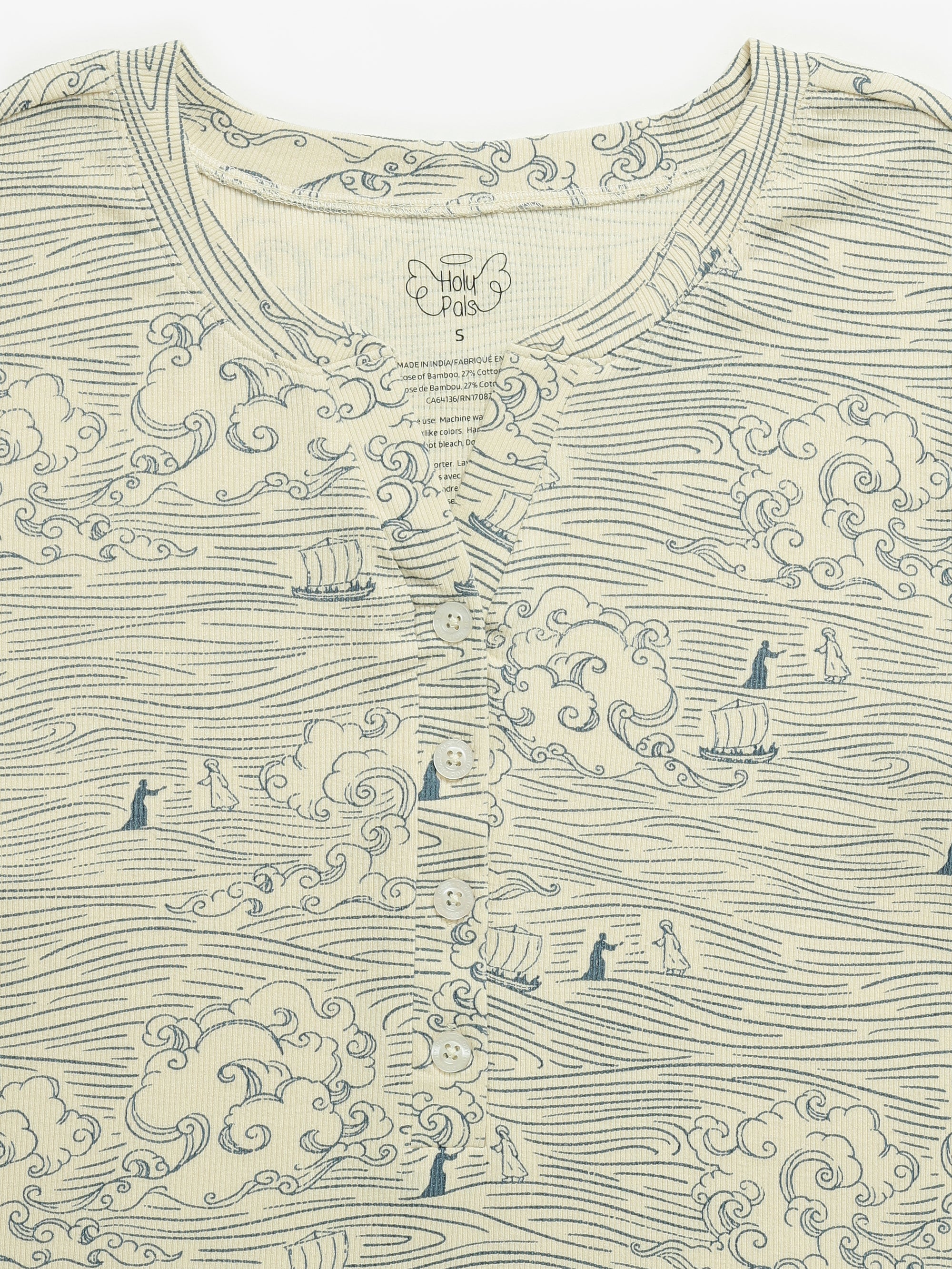 Walking on Water Womens Nightgown PJ Ribbed Cotton/Bamboo Blend