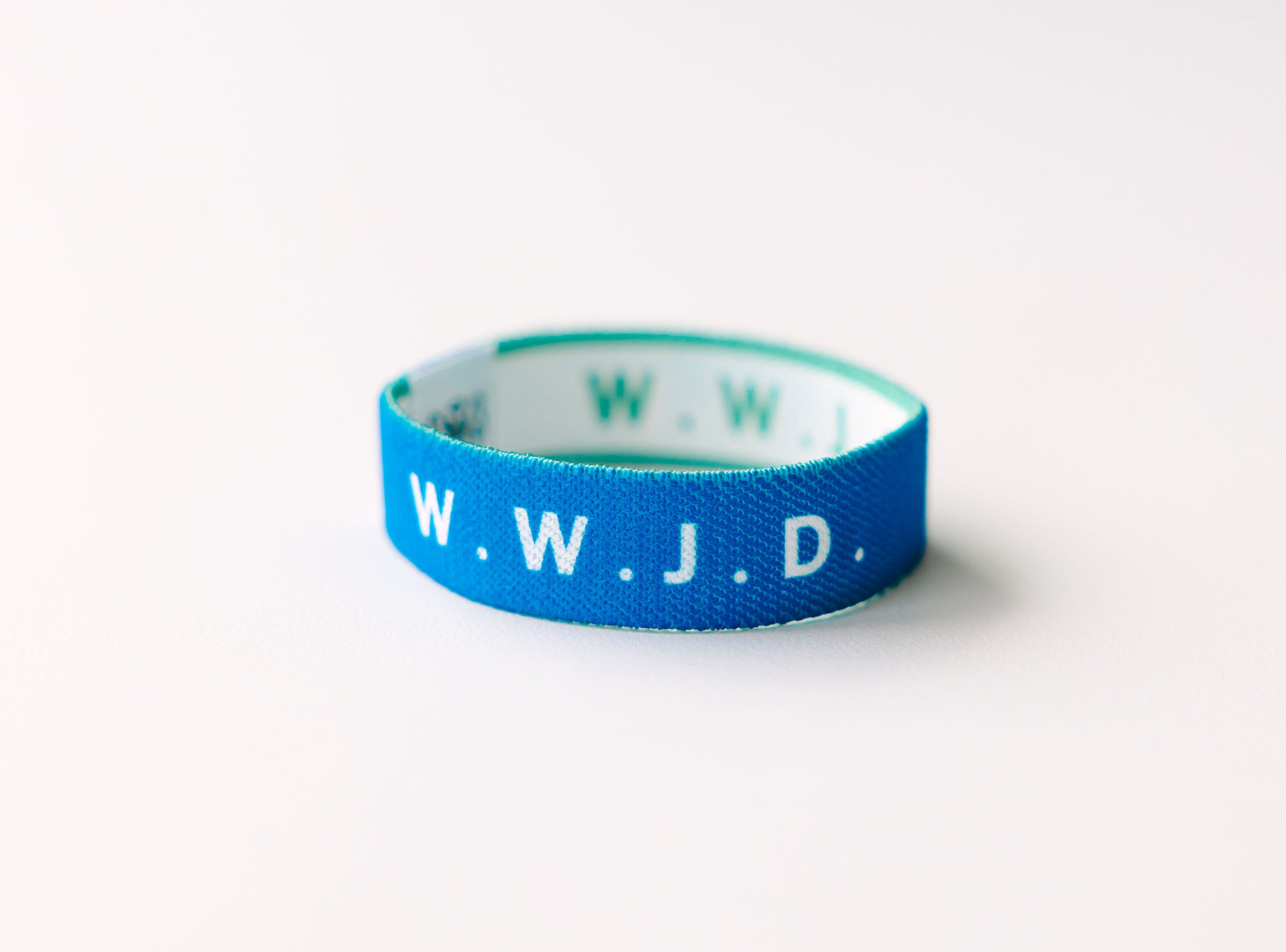 WWJD Blue Reversible Elastic Fabric Bracelet
